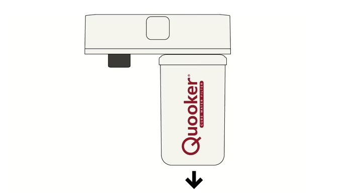 Na 12 maanden zal er een geluid- en lichtsignaal afgaan. Dit is het teken dat het filter vervangen moet worden. Het filter is bereikbaar onder het schuifje aan de bovenkant van de CUBE. Op het filter staat beschreven hoe je het filter vervangt. Het geluidssignaal dat aangeeft dat het filter vervangen moet worden, kan voor 72 uur uitgezet worden. Druk hiervoor kort op het rood oplichtende knopje onder de schuif bovenop de CUBE. Gedurende deze periode kun je een filter bestellen via quooker.nl