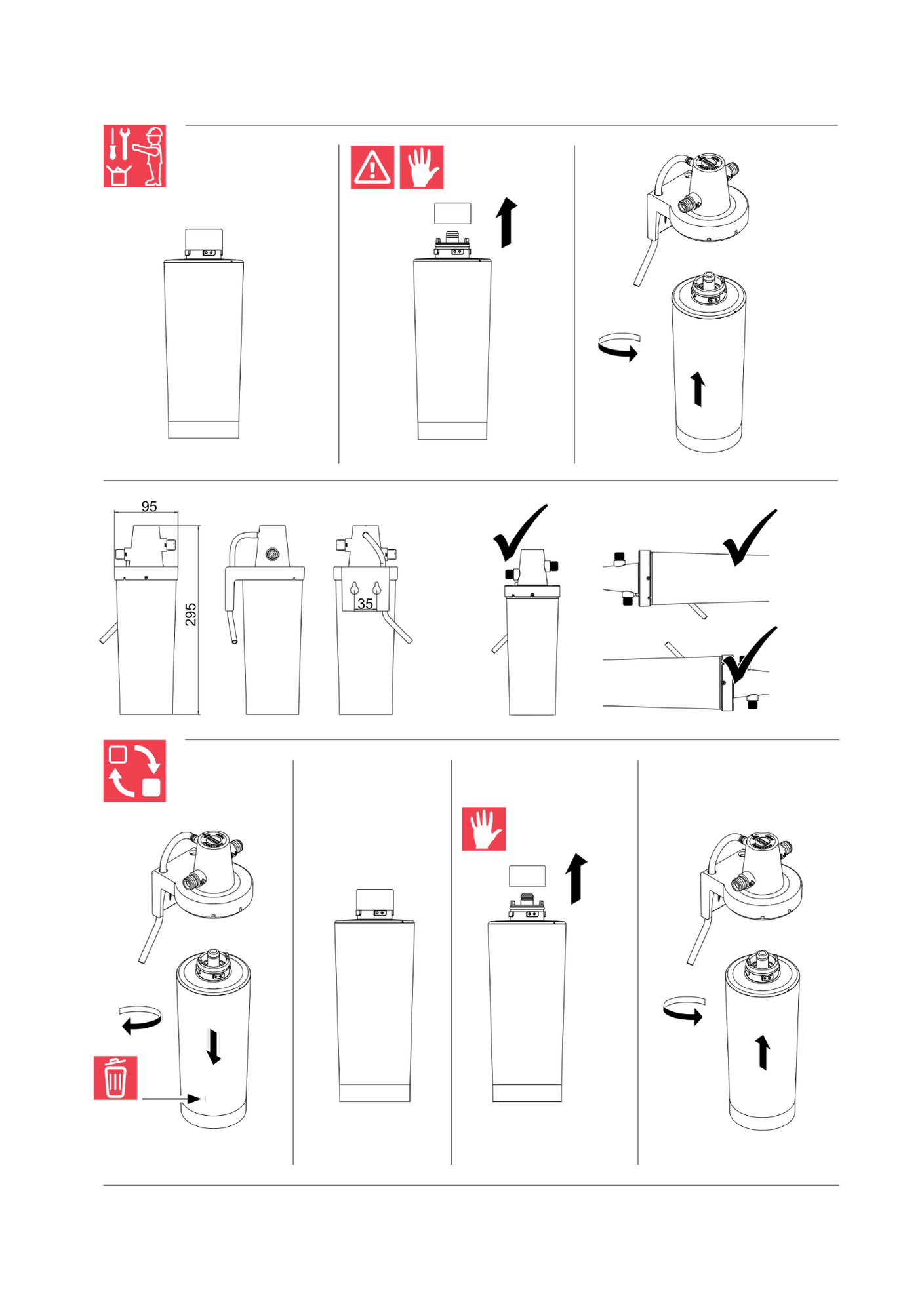 Filterinstallatie. Het Franke-filter kan op verschillende manieren worden gemonteerd: Losstaand op een vlakke ondergrond. Verticaal aan de muur. Horizontaal aan de muur. Stappen voor installatie. Pla…