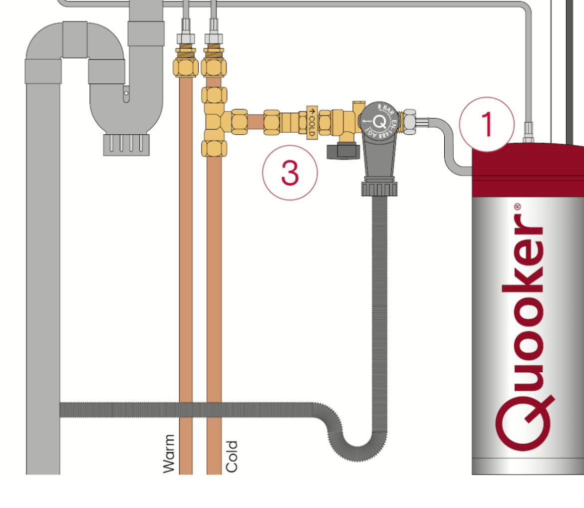 Wanneer een Quooker tweedehands wordt verkocht, ontbreken vaak onderstaande onderdelen. Ze zijn echter essentieel voor een correcte en veilige installatie, conform de richtlijnen van Quooker: